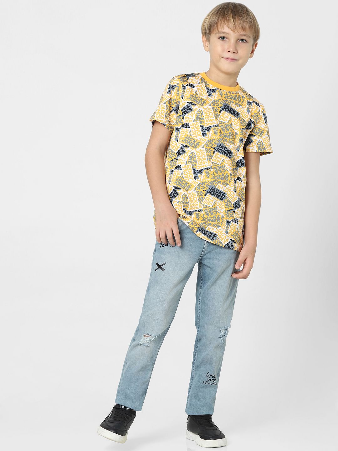 Classic logo print crew neck tee for little boys. Made from cotton fabric. Style with shorts and sneakers for a casual look.