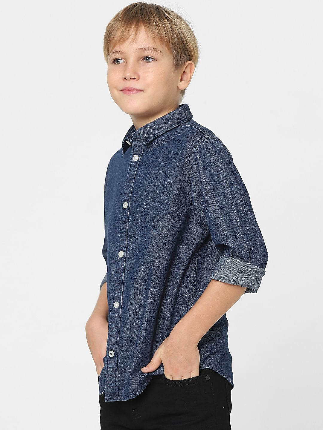 Full sleeves denim shirt for little boys from Jack&Jones Junior made from cotton fabric. Features a classic button down front closure. Will look great paired with denims and sneakers.