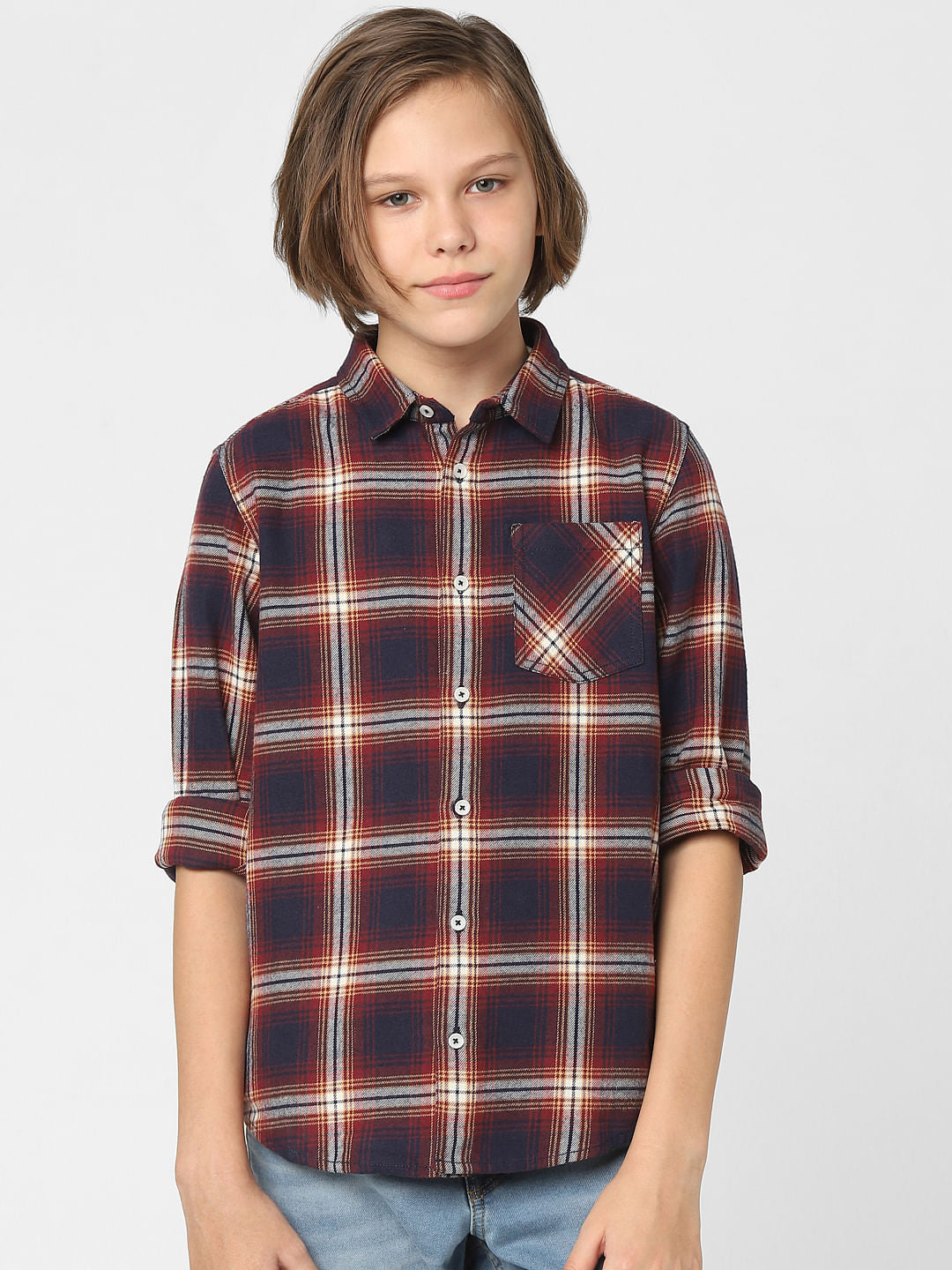 BOYS RED CHECK FULL SLEEVES SHIRT