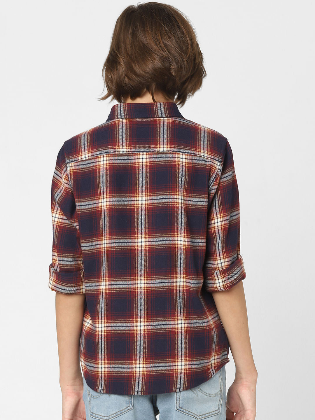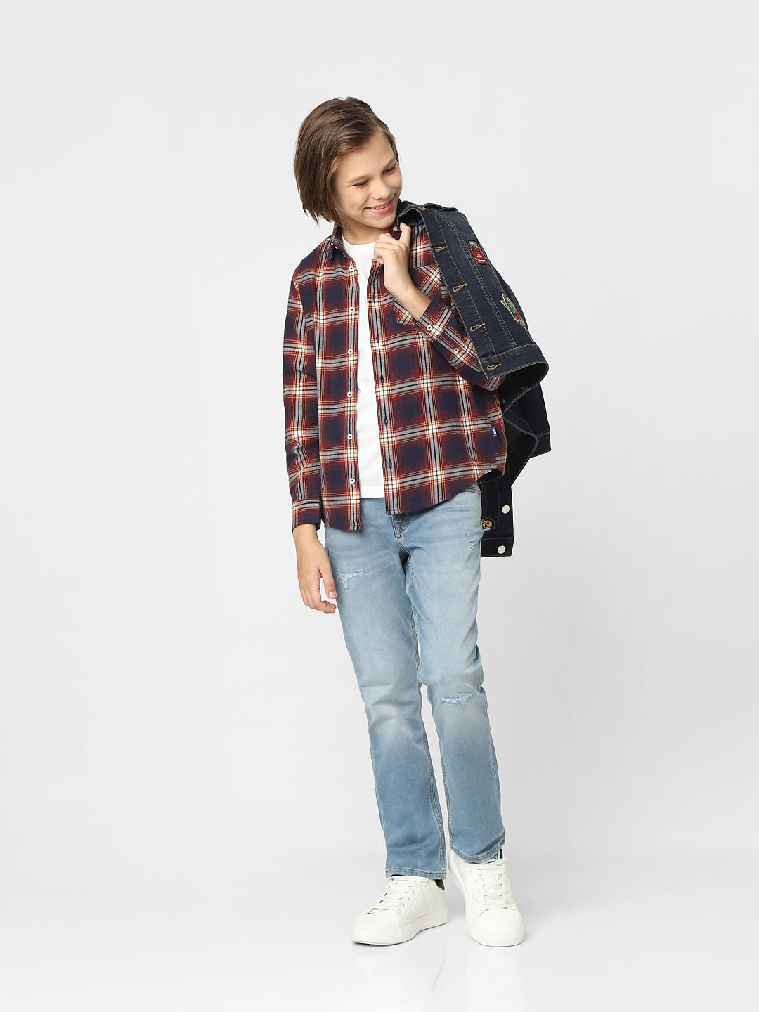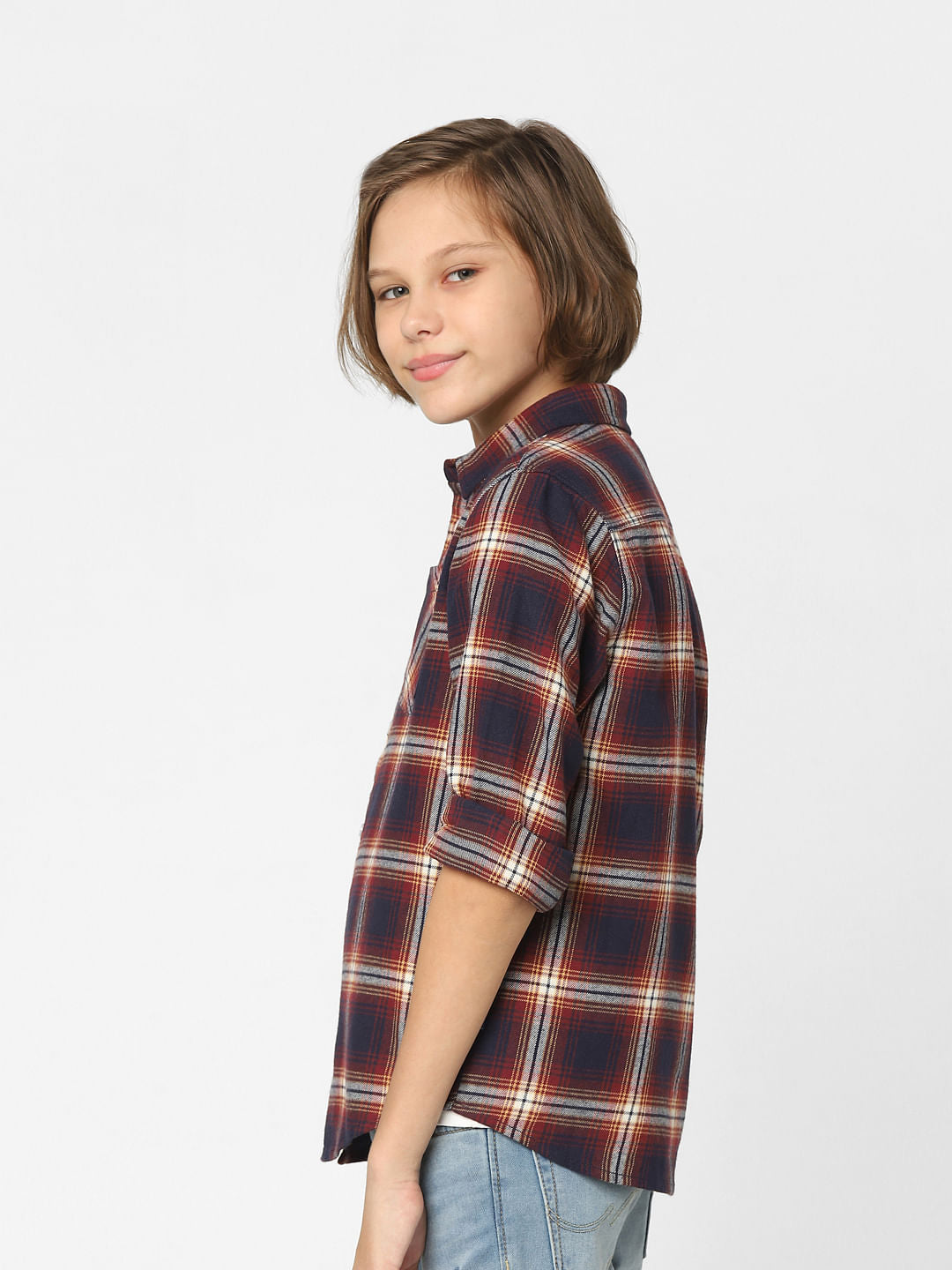 Super cool and smart check shirt for little boys. Crafted from soft cotton fabric, and designed with a graphic patch print on the back and full sleeves.