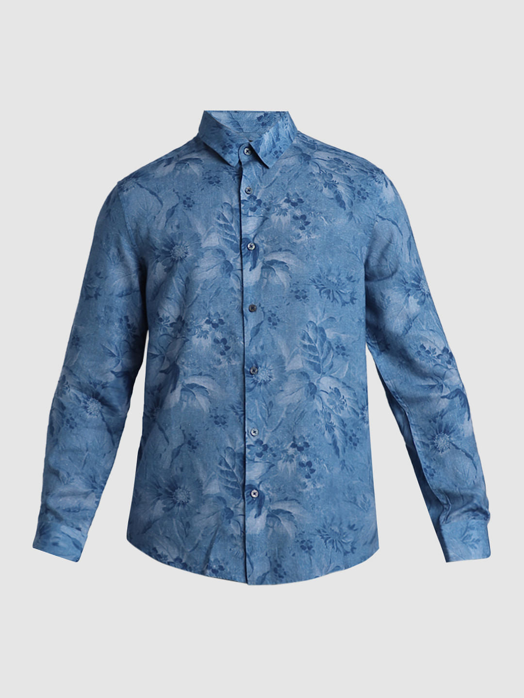 Men's linen blend full sleeves shirt designed with an all over floral print. Features a classic button closure and collar. Style it with jeans and sneakers for a rad look!