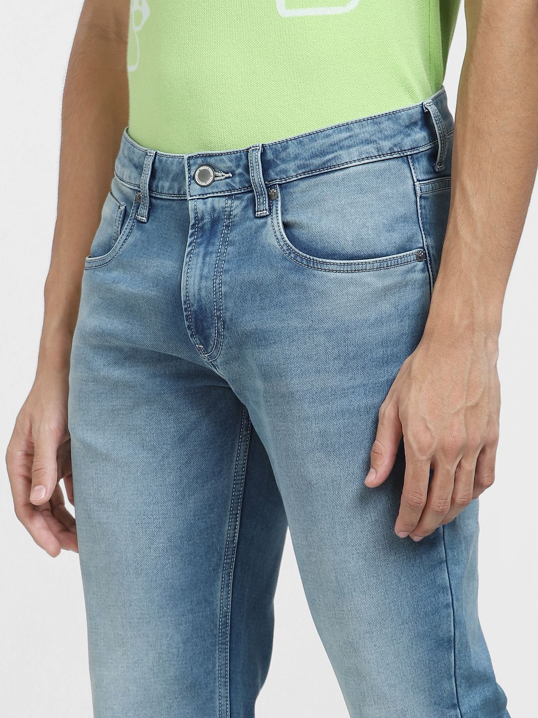 LIGHT BLUE MID RISE REGULAR FIT JEANS
