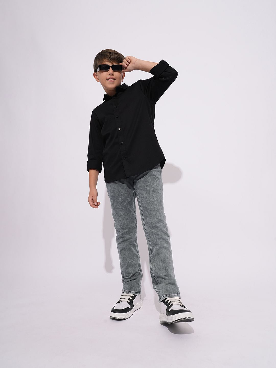 Meet the coolest jeans for your little guy! These grey jeans feature a regular fit that's comfy enough for all-day adventures. With a stylish washed effect, zip button closure, and belt loops for extra adjustability, they're perfect for any activity. Plus, they've got pockets for stashing treasures and snacks. Ready to rock the day in style? These jeans are a must-have!