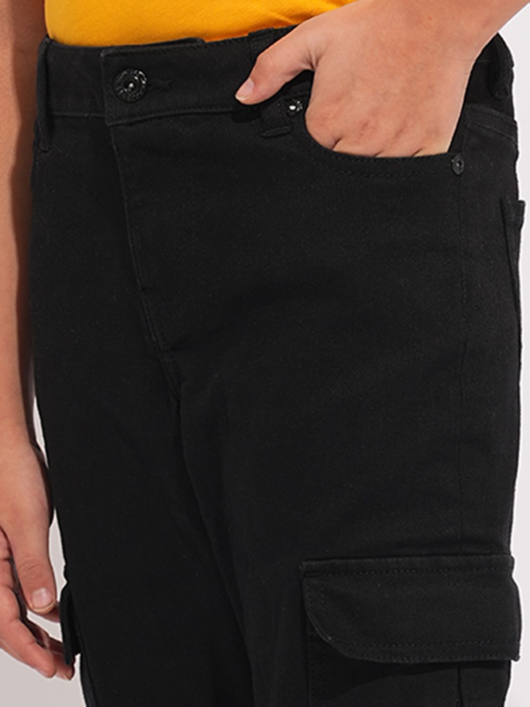 Our Black Patch Pockets Jeans are all about fun and function. With cool flap pockets for secret treasures, a zip button closure for easy dressing, and belt loops to add your favourite belt, these jeans are perfect for little explorers. Plus, the classic black colour means they go with everything in his wardrobe. Ready for action and looking sharp!