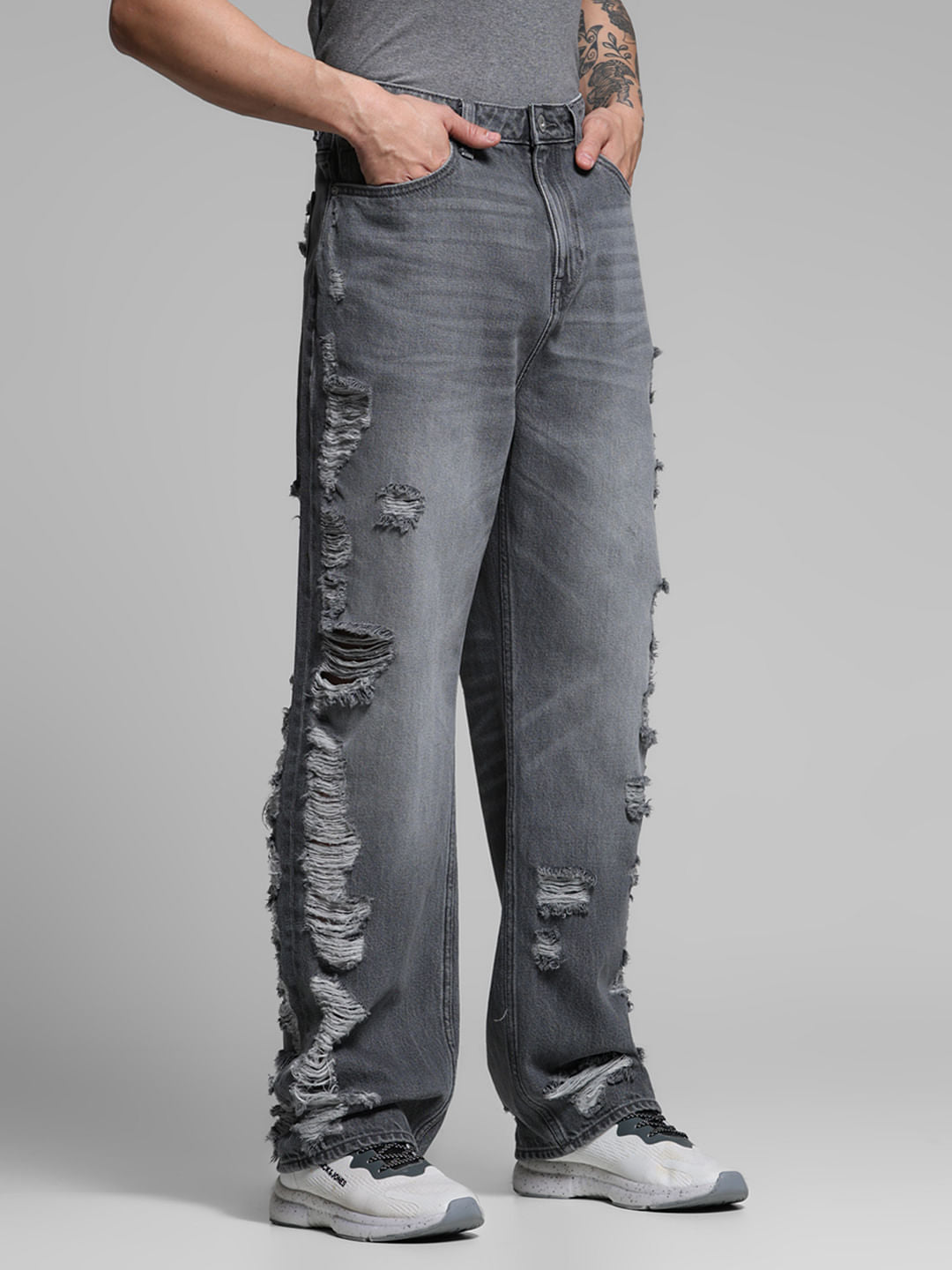 GREY DISTRESSED DARIO LOOSE FIT JEANS