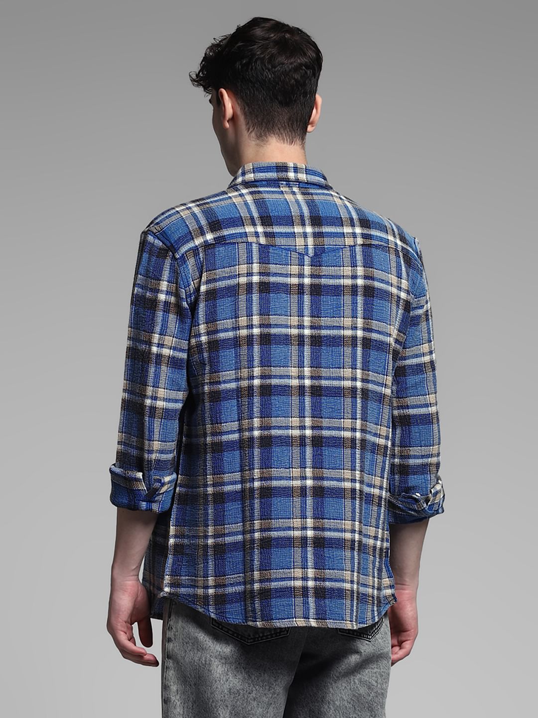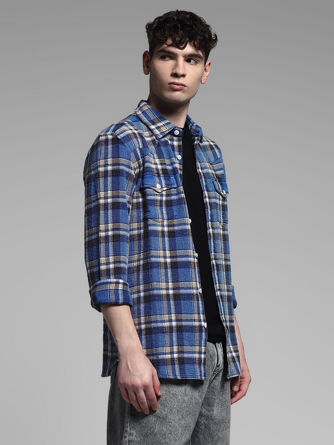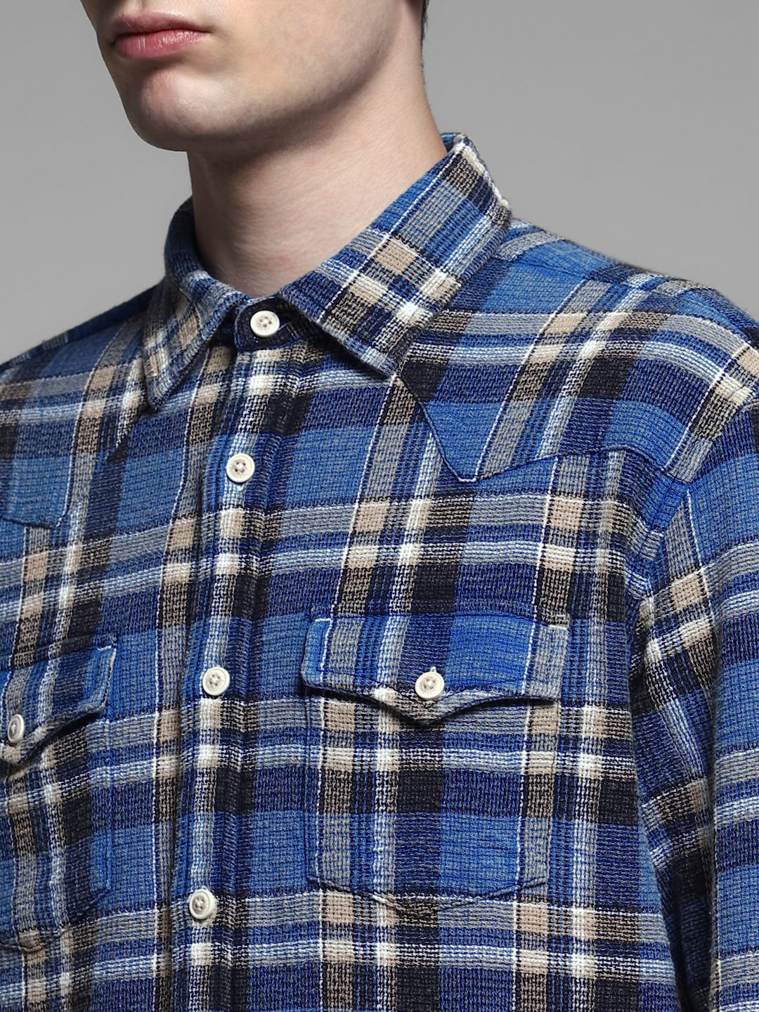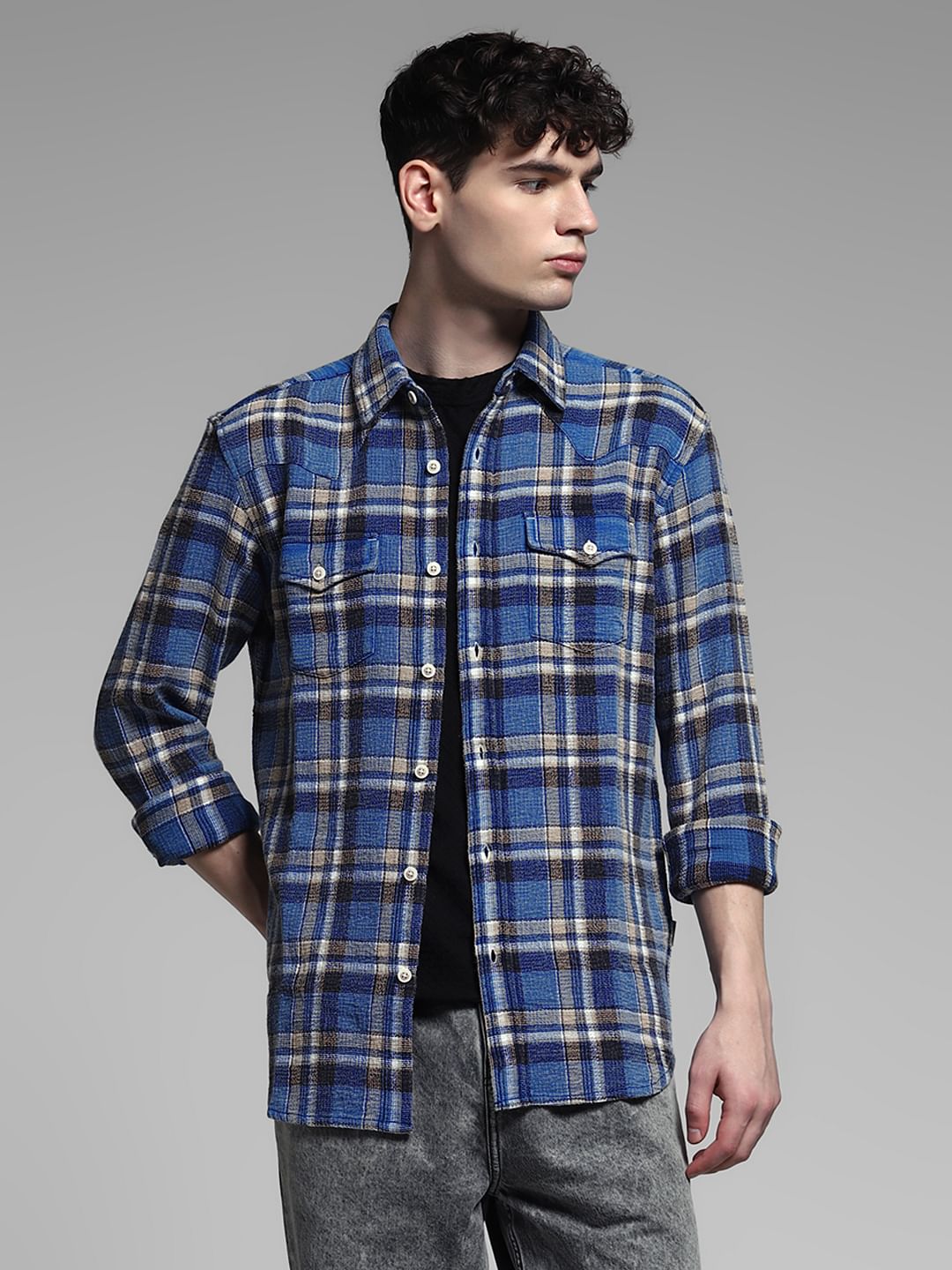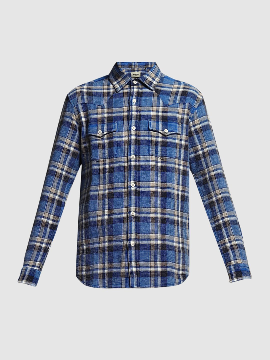 Stay effortlessly cool with this blue check print cotton shirt. Featuring chest pockets for a touch of utility, it’s your go-to for laid-back days and easy layering. Classic, comfy, and undeniably sharp!