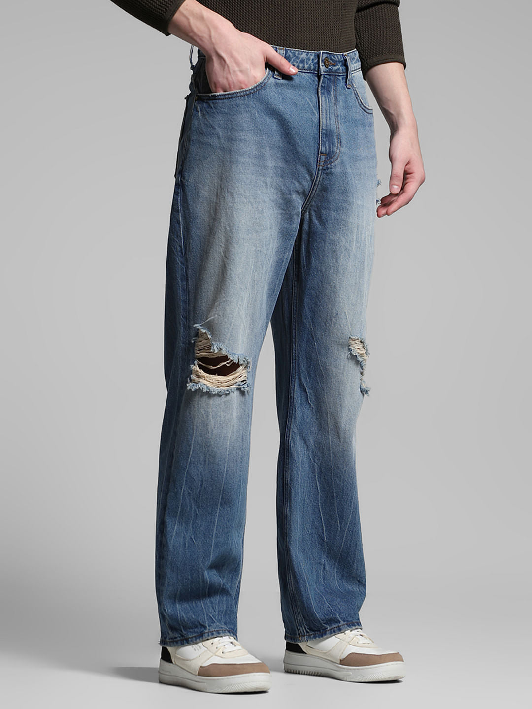 BLUE HEAVILY DISTRESSED DARIO LOOSE FIT JEANS